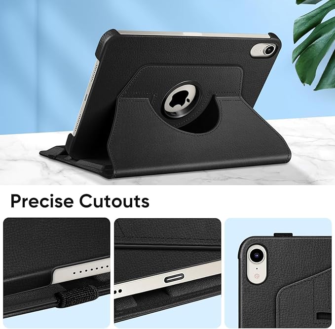 - 360 degree rotating structure in the case for flexible landscape and portrait viewing. Automatically wakes or puts your device to sleep.